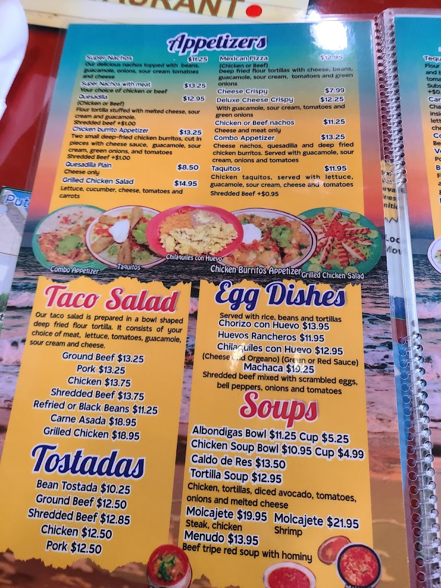 Side Orders: A variety of sides complement the main dishes, including guacamole, homemade tortillas, various salsas (e.g., salsa diabla and salsa mojo), beans, tamales, different types of tacos, and queso dip among others.